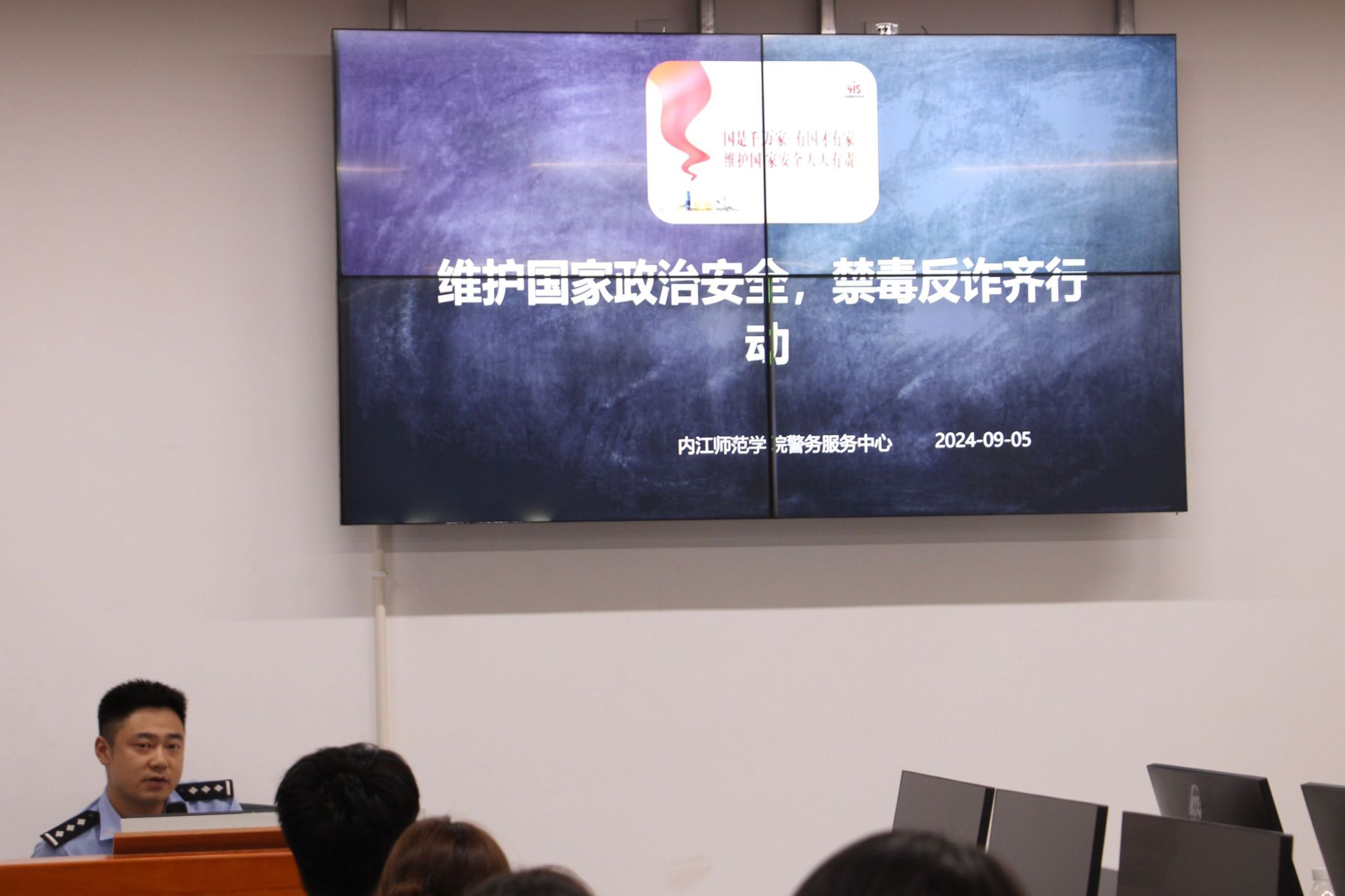 为进一步提高公司学子的防范意识和防骗能力,有效遏制校园诈骗事件的发生,营造安全稳定的校园环境。公司于9月5日在弘文楼319联合公司保卫处、高桥派出所开展了“开学反诈第一课”活动。学工办副主任鲁腾飞和第十七届团总支员工会全体成员到场聆听学习。