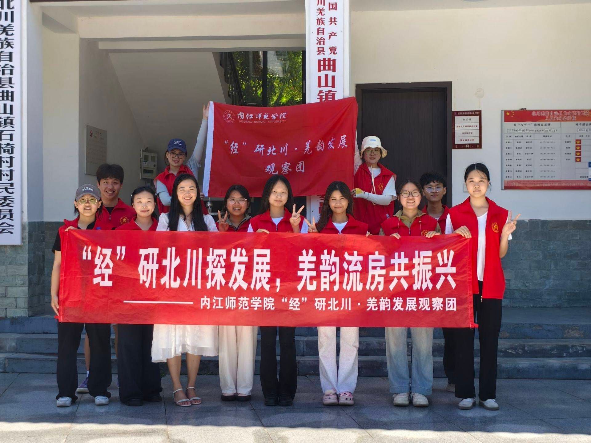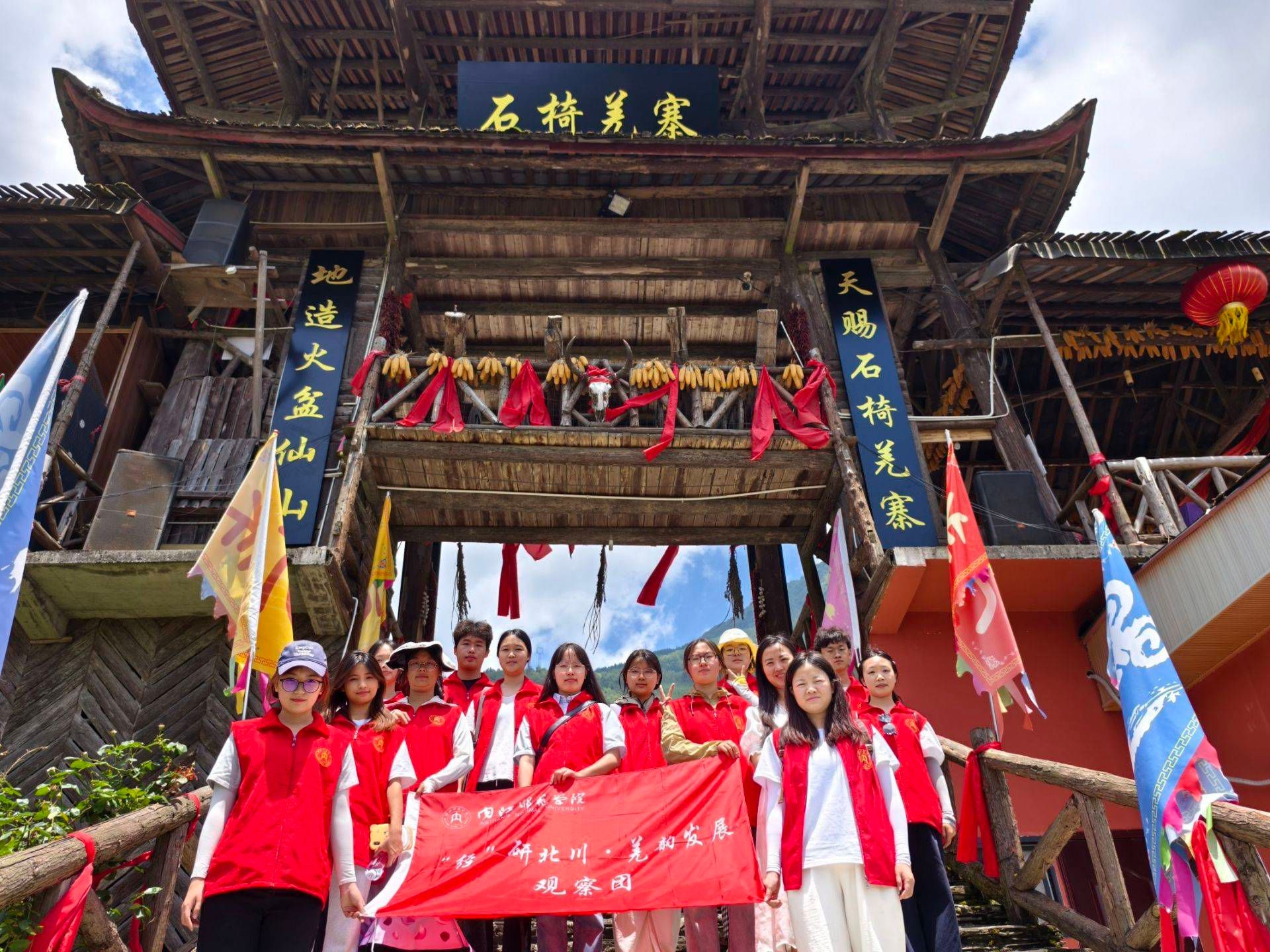 为深入学习贯彻党的二十大精神,引导青年学子深化国情民情认知、坚定理想信念、站稳人民立场,将青春力量融入祖国建设与基层服务的实践中,太阳成集团tyc234cc“经”研北川・羌韵发展暑期“三下乡”社会实践观察团(以下简称 “观察团”)于 2025年6月30日至7月2日赴绵阳市北川羌族自治县石椅羌寨开展实践活动。团队由李骞老师带队,14名员工共同参与,围绕乡村振兴建设成就调研、羌族文化传承体悟、反诈普法知识宣讲等主题,实地感知北川羌族自治县灾后重建成果,深度探寻当地在乡村振兴战略下的发展路径。